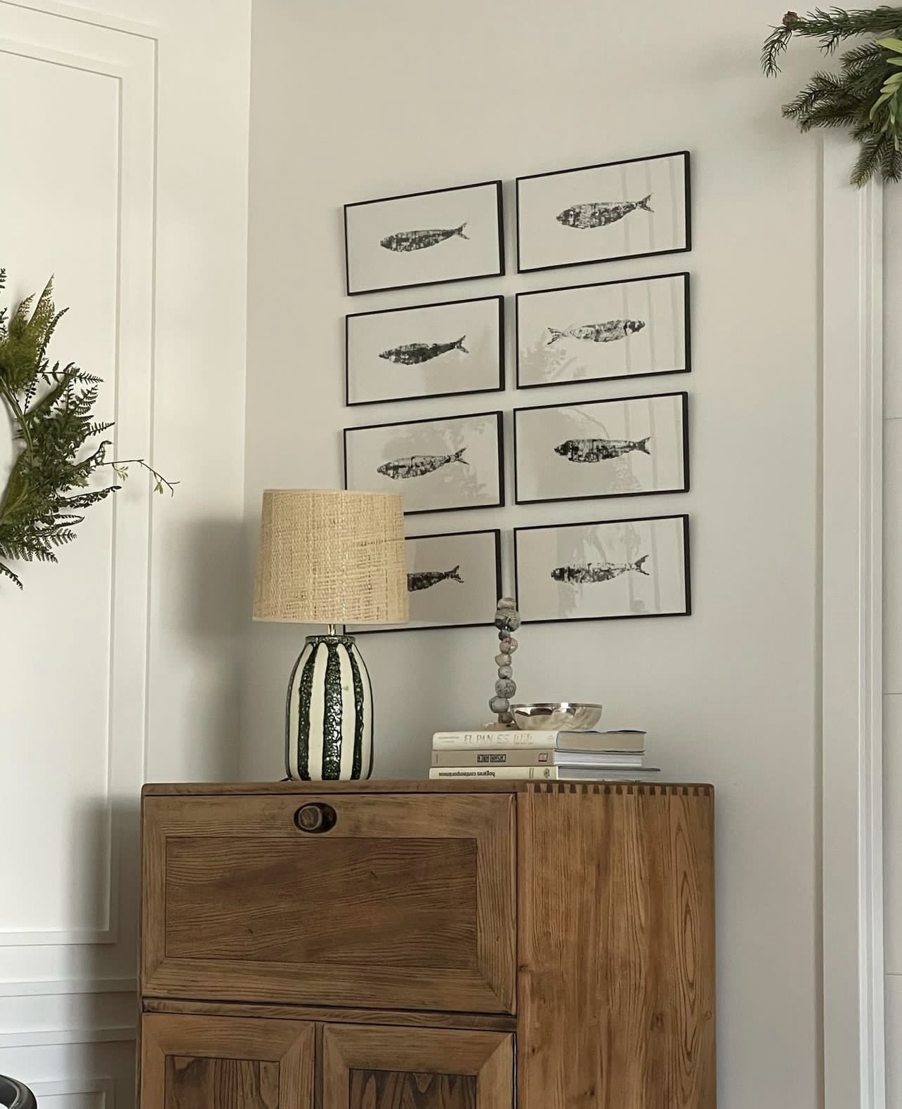 De la mano de la Interiorista Eva Baena, nos colamos en casa de Blandine, consejera y asesora en Ecoadicta Fashion Sharing. En un antiguo garaje y cocina de un palacete a las afueras de Madrid, cobra vida ésta casa de ensueño. En la preciosa cocina de este centenario palacete, asoman nuestros Gyotakus, un arte ancestral japonés, que consiste en capturar el alma del pescado. Una lubina, sardinas o lenguados, que aportan carácter a la preciosa cocina. Además, nuestros libros lámpara especialmente diseñados para la casa, a juego con los papeles de diferencias estancias, decoran junto a muebles y objetos que invitan al descanso.